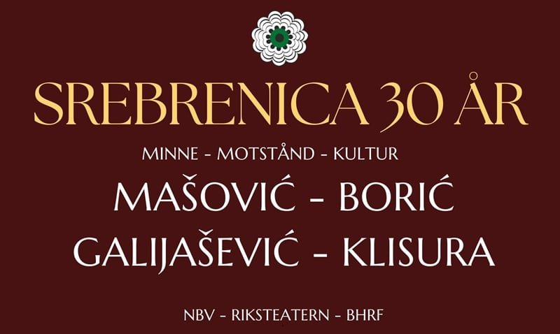 BHRF organizuje poseban program „Srebrenica 30 god“ u saradnji sa Riksteatrom i NBVom u 5 gradova: Stockholm, Jönköping, Västerås, Malmö, i Göteborg.