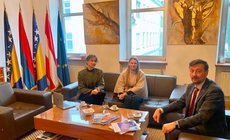 Ambasador Bosne i Hercegovine u Austriji Siniša Bencun ugostio je ministricu privrede Unsko-sanskog kantona (USK) Samru Mehić, ali pažnju javnosti nije privukao sam sastanak, već detalj u pozadini fotografija nastalih tom prilikom.