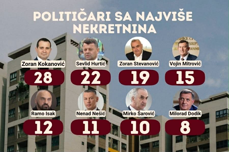 Stanovi, kuće i vikendice u Beogradu, Budvi, Tivtu i drugim atraktivnim lokacijama, pozamašne ušteđevine, te brojne kompanije, samo su dio imovine političara u Bosni i Hercegovini.